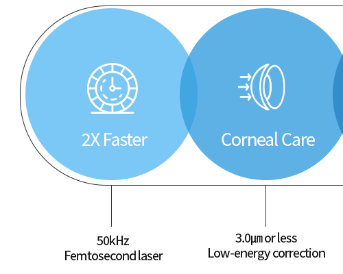 The NewRelax SMILE One-Step laser procedure shortens the surgical time to less than 5 minutes and significantly reduces corneal exposure.