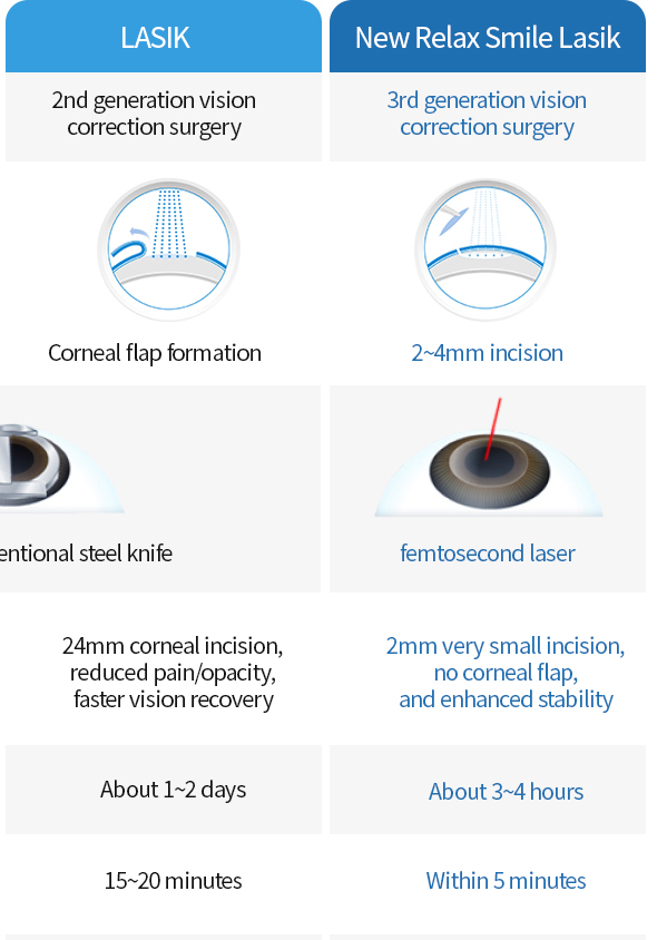 If you're concerned about the three major side effects of vision correction—glare, glare, and dry eyes—NewRelax SMILE LASIK is the solution.