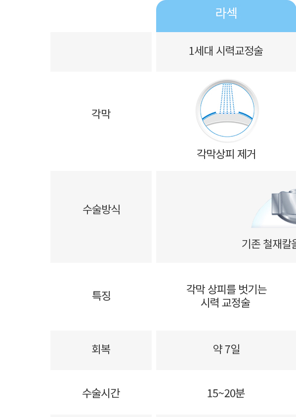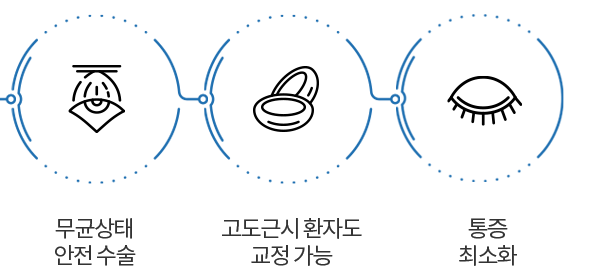 시력 교정을 꼭 하고 싶다면 뉴릴렉스 스마일라식 시력교정의 핵심은 오직'각막' 입니다. 각막 절편 없는5분 타임어택 매우 빠른 수술 압구정안과 스마일라식의 핵심 01 각막을 보호하는 노하우, 작은 절개창 2mm Minimum Incision 각막 손상이 없으면, 부작용도 적어집니다. 각막을 깎아내지않고 투과하여각막 실질에만 정교하게 레이저를 조사합니다. 50KHZ펨토세컨레이저 3.0㎛ 이하 로우에너지로 교정 BEVEL-IN SIDE CUT 스마일 닥터 3인 눈부심, 빛 번짐, 안구건조 등 시력교정 3대부작용이 걱정된다면뉴릴렉스 스마일라식입니다. 비쥬맥스 스마일 인증 - VISUMAX - 압구정안과는 스마일 라식를 진행한 모든 분들에게 독일 칼자이스에서 개발된 VISUMAX (비쥬맥스)를이용한 스마일라식임을 인증하는 자이스 스마일카드를 발급하고있습니다. 라섹 vs 라식 vs 뉴릴렉스 스마일 라식 라섹 라식 뉴릴렉스 스마일라식 1세대 시력교정술 2세대 시력교정술 3세대 시력교정술 각막 각막상피 제거 각막절편 형성 2~4mm 절개 수술방식 기존 철재칼을 사용하는 방식 펨토세컨 레이저 특징 각막 상피를 벗기는시력 교정술 각막 24mm 절개 통증/혼탁 감소 빨라진 시력 회복 2mm 매우 적은 절개량 각막절편이 없고, 안정성 강화 회복 약 7일 약 1~2일 약 3~4시간 수술시간 15~20분 15~20분 5분이내 02 매우 빠르고 정확한 수술시간 기록 5min Time Attack 뉴릴렉스 스마일라식 One Step 레이저 방식은5분 이내로 수술시간을 단축하고, 각막 외부 노출을 현저히 줄였습니다. 레이저 커팅각막 두께, 밀도, 신경세포 위치 등을고려하여 펨토레이저 강도 조절 2mm의 매우 적은 절개량절개창은가능하면 작게 로우에너지로정밀하게 각막 실질 분리 5분 이내 수술각막 외부환경 노출 시 감염, 손상위험 예방 통증 줄이고, 회복 빠르게 라식하면 새로운 세상이야! 라섹하면 너무편해 하지만 눈이시리거나, 야간에 운전하기 힘들고, 안구건조증이생길 수있어... 불안하고 두려운 후기때문에 더 이상 망설이지않아도됩니다. ‘Yes, but’이 아닌 ‘Yes, YES!!’ 입니다. 수술 정보 수술 소요 시간양안 10분 내외 마취 방법안약을 이용한 점안 국소마취 내원치료약 3회 (1주일 이내, 1개월, 3개월) * 수술 경과에 따라 달라질 수 있음 수술 소요 시간내복약 1일, 안약 1개월 시술 후 체감 통증거의 없음 수술 후 주의사항- 안약 사용법 잘 지키기 - 감염 요인 주의 (수영장, 목욕탕, 사우나등) - 1개월 금주 / 격렬한 운동 자제